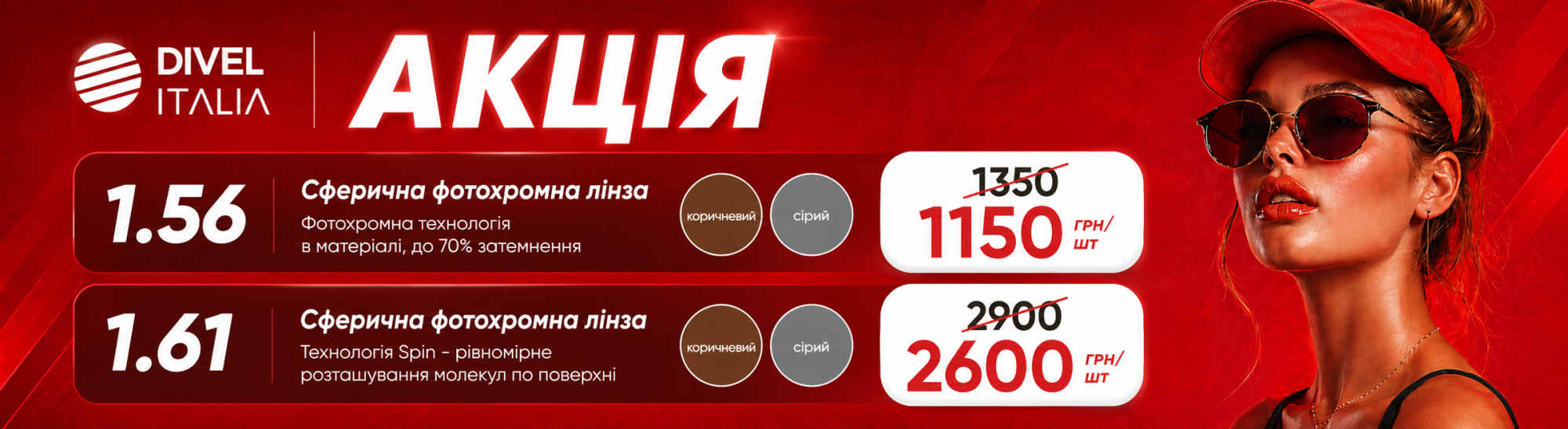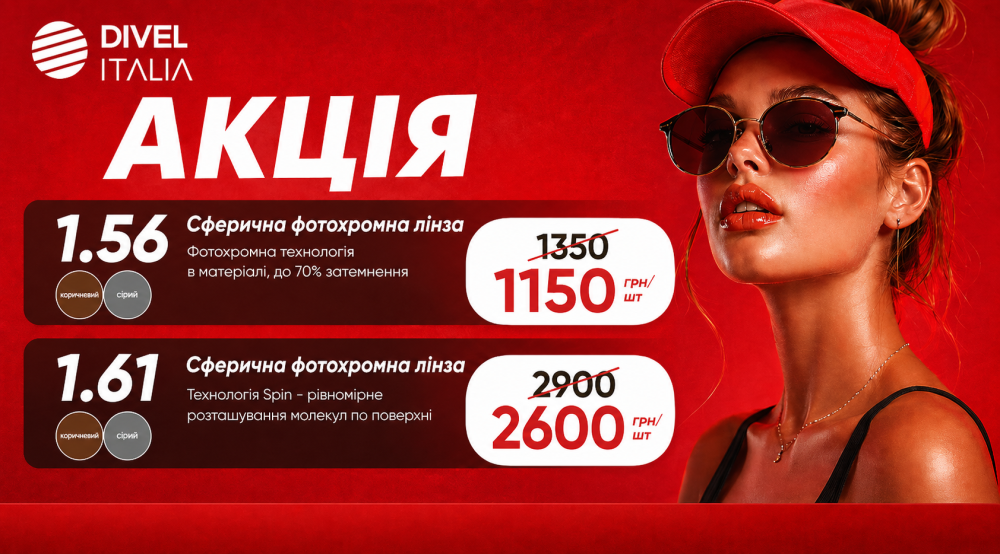 АКЦІЯ на фотохромні лінзи бренду DIVEL ITALIA